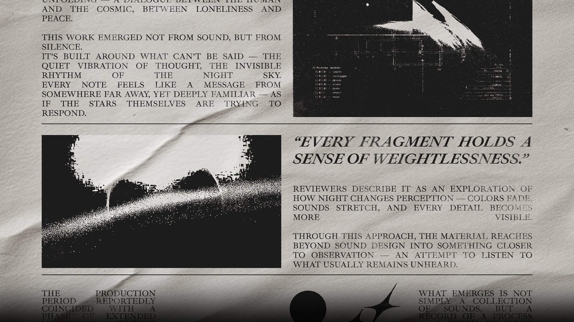 // explore the stillness of night through a collection shaped by silence, distance, and emotion.
